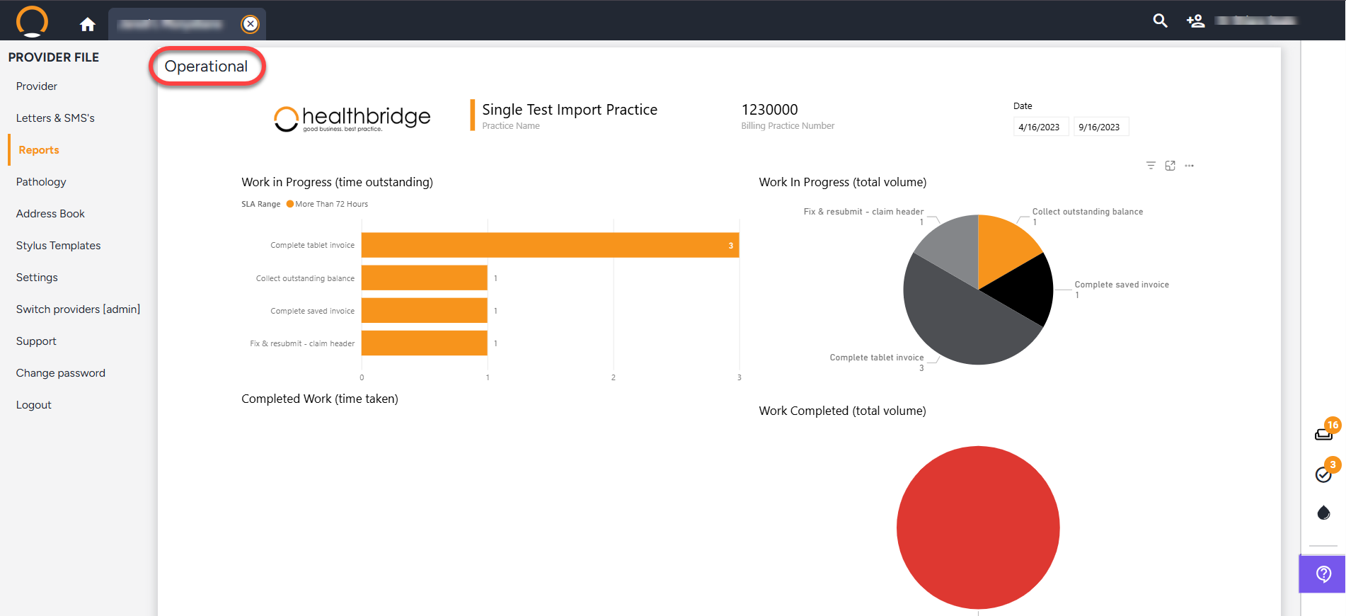 The ‘Clinical dashboard ’, ‘ Feature Usage ’ and ‘Operational ’ reports display different information and graphs to help you better manage and grow your practice.