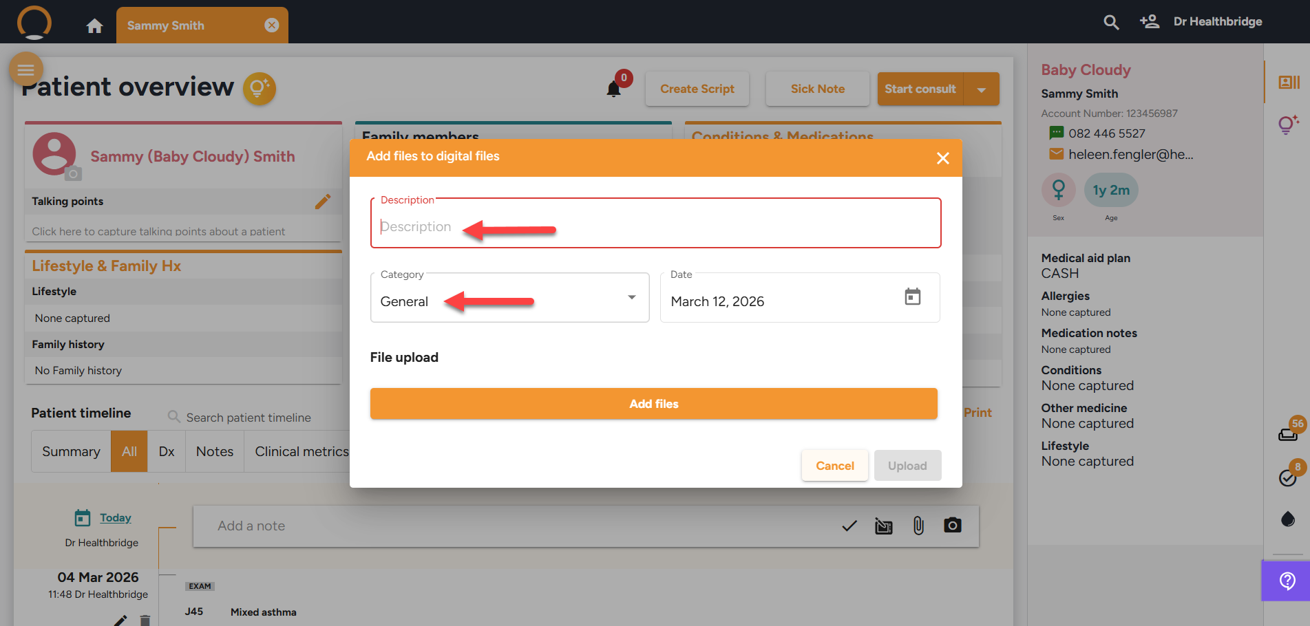 This feature ensures secure document storage, efficient record-keeping, and easy access to patient files.