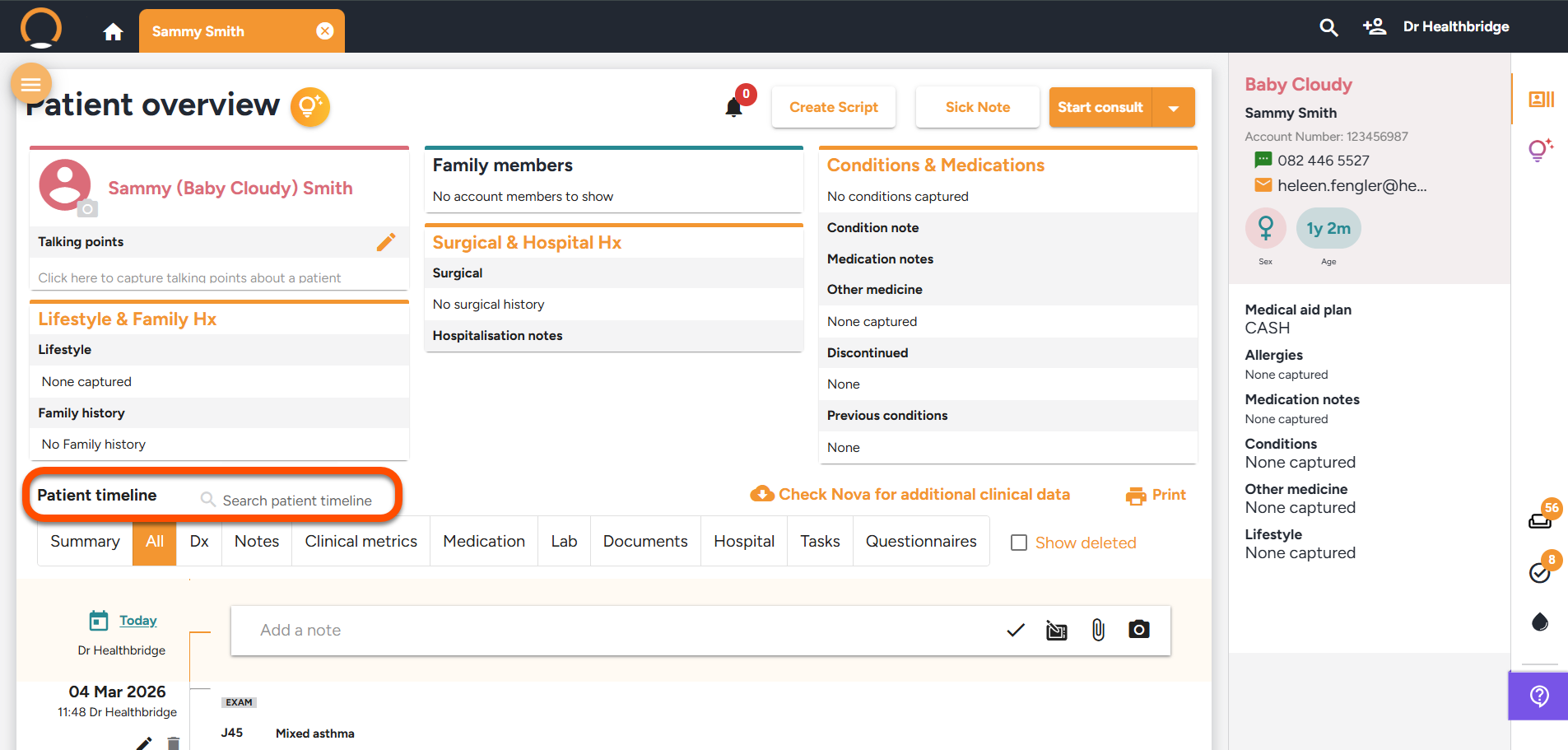 - Open the patient file; the Patient Timeline will be displayed automatically.