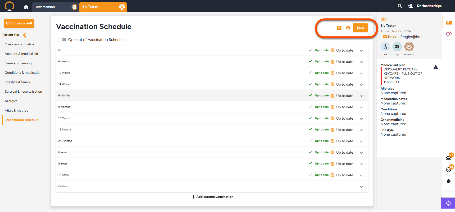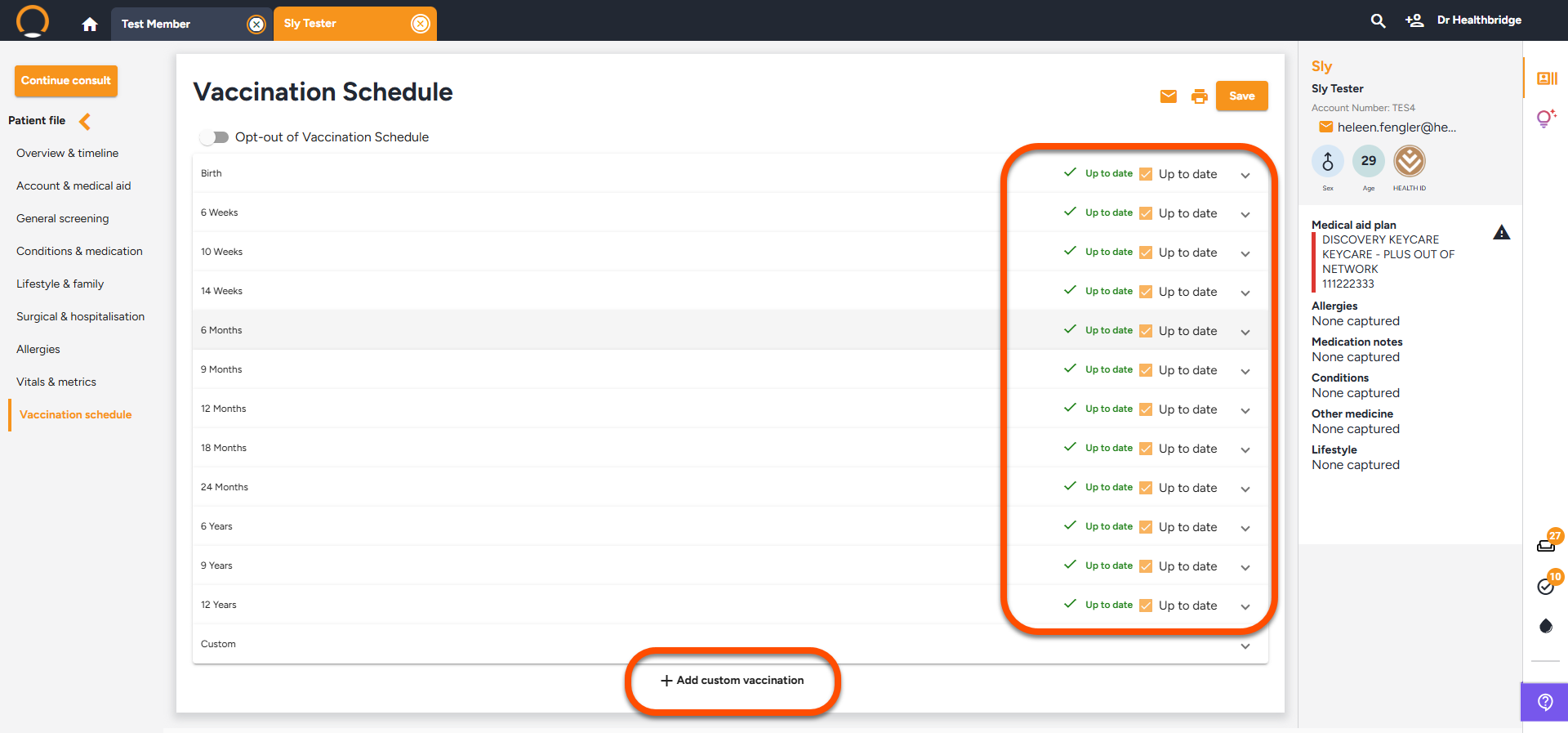 Healthbridge Clinical has introduced a new Vaccination Schedule feature, enabling the recording and tracking of patient vaccination histories. This feature supports the inclusion of custom vaccinations for all age groups and incorporates standard childhood vaccinations, as outlined in the "Road to Health" booklet.