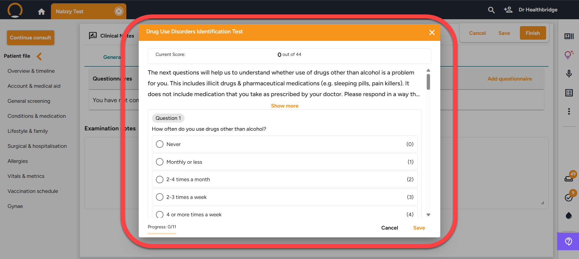 Try it now: During a consult, click the 'Examination' tab and then 'Questionnaires'.