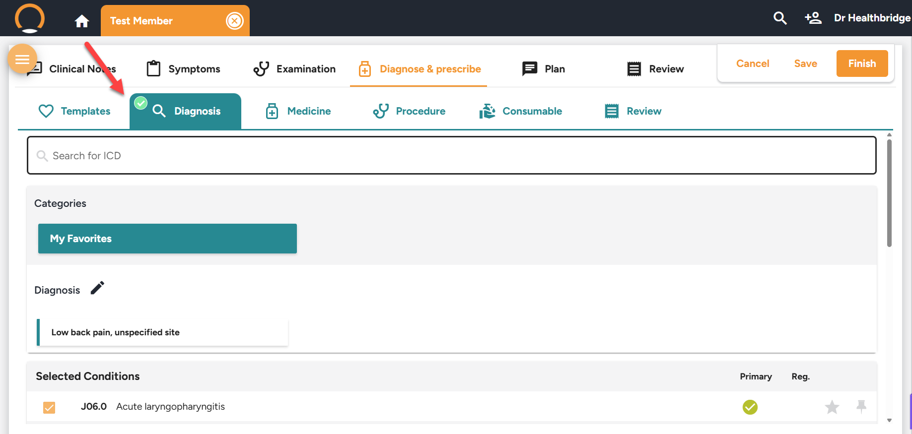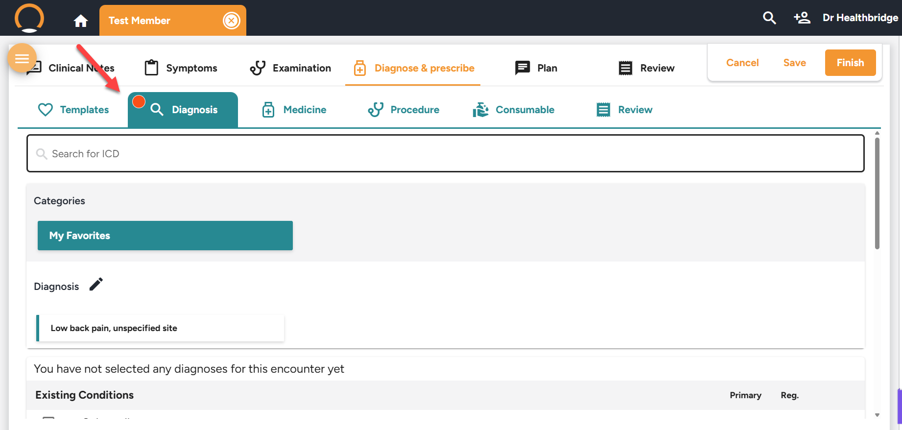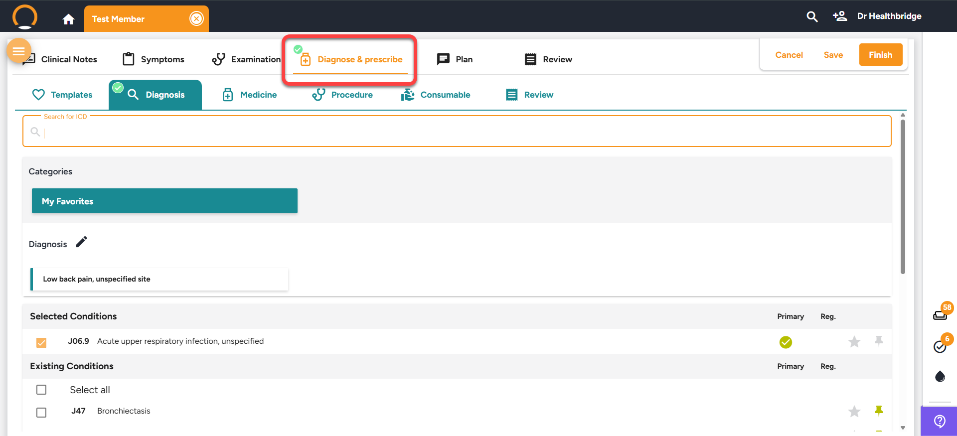 A proactive visual indicator has now been integrated into the Diagnosis tab for consultations. Red dot ICD-10 required / Green tick ICD-10 added.This enables providers to detect missing diagnosis codes early in the workflow, minimizing disruptions at the point of encounter completion.