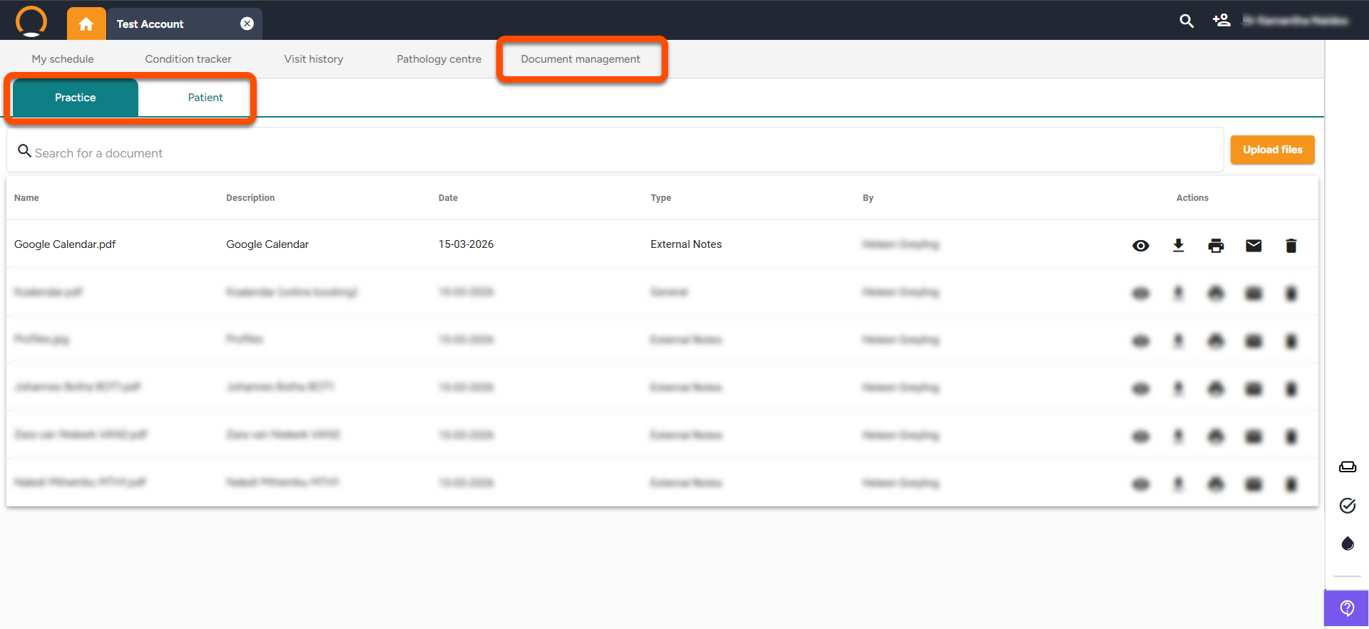 Patient File Upload - The management of patient documents has been enhanced to incorporate both patient-specific and practice-wide files. The previous "Practice documents" system has been upgraded to "Document Management" now offering two distinct tabs: Practice, for documents applicable to the entire practice, and Patient, for files unique to individual patients. Please note, file uploads are capped at 25MB.