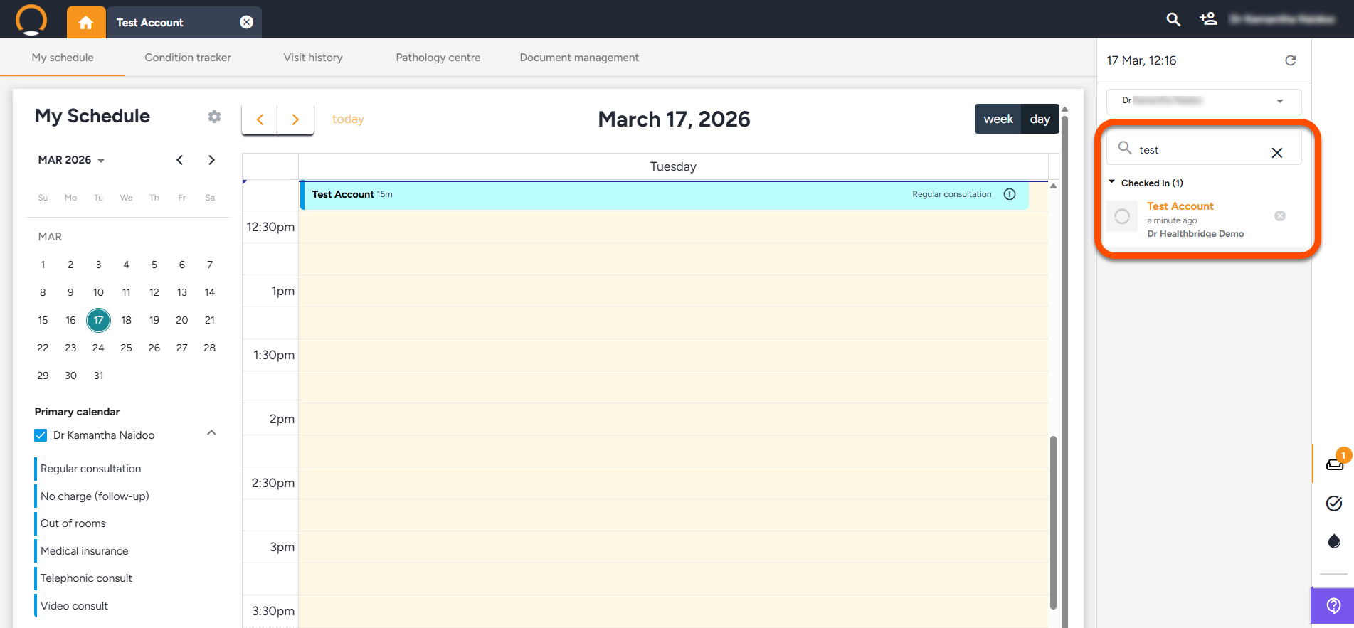• Waiting room search option - A search feature has been integrated into the right-hand pane of the Waiting Room to assist in swiftly identifying the correct patient amidst a busy list.
